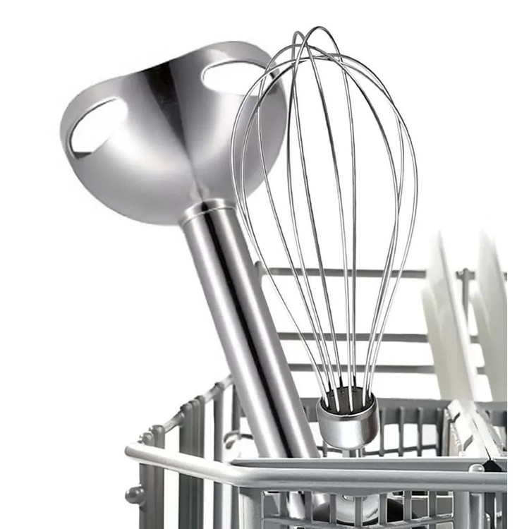 موتور پرقدرت با توان 1000 وات دور موتور متغیر با 12 سرعت قابل تنظیم بهمراه حالت توربو پایه استیل ضد پاشش تیغه یخ خردکن خردکن با گنجایش 0.6 لیتر همزن بالونی جهت تهیه سس،تخم مرغ و مواد غذایی با بافت نرم ساخت کشور اسلوونی لیوان مدرج بهمراه درب پوش