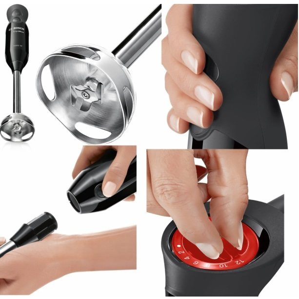 گوشتکوب برقی «بوش» مدل « MS61B6170» از دستگاههای حرفه ای و کاربردی عرضهشده در بازار است. این محصول خوشساخت از نظر زیبایی هم چیزی کم ندارد. محل قرارگیری دست روی آن طوری طراحی شده که بهخوبی در دست جای میگیرد و لغزشی ندارد. دسترسی به دکمههای کنترلی و پیچ تنظیم سرعت، آسان است. گوشتکوب برقی بوش مدل MS61B6170 در دوازده سرعت امکان فعالیت دارد تا بهترین نتیجه حاصل شود. تیغههای استیل ضدزنگ طراحی ویژه و چهار پره ای دارند تا بهترین عملکرد را داشته باشند. با استفاده از سری گوشتکوب، قدرت موتور صرف چرخاندن تیغهها شده و برای لهکردن موادی مانند گوشت، بادمجان و... استفاده میشود. با عوضکردن میلهی پایه، دستهی موتور به ظرف خردکن متصل میشود و آماده است تا موادغذایی درشتتر را توسط تیغههای تیز درون ظرف خردکن ریز کند. همراه این گوشتکوب بوش، یک لیوان هم ارائه میشود که برای پایهی گوشتکوب کاربرد دارد. با لهکردن مواد داخل این لیوان، راندمان و راحتی کار با گوشتکوب بیشتر میشود. علاوهبراینها سری همزن نیز به همراه دستگاه عرضه میشود که برای همزدن موادی مانند تخممرغ، سسها و خمیرهای نرم قابلاستفاده است. ضمنا این مدل سرعت توربو هم دارد که با نگهداشتن دکمهی مربوطه روی بدنهی اصلی دستگاه، باسرعت فعالیت میکند و بهمحض رهاکردن میایستد. بوش، تولیدکننده و عرضهکنندهی لوازمخانگی برقی در بازار جهانی است. این شرکت با ارائهی محصولات باکیفیت و نوآورانه همواره پیشرو بوده و طرفداران خود را در سراسر جهان راضی نگهداشته است. بوش لوازمخانگی کوچک تا بزرگ تولید میکند و در تمامی موارد موفق عمل کرده است.