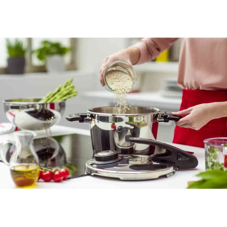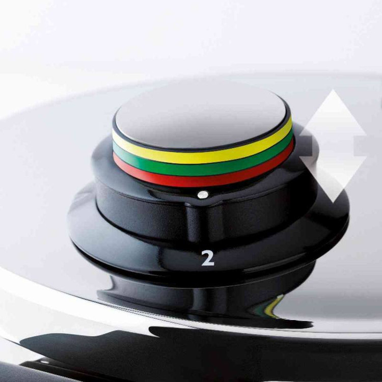 خروجی بخار مجزا از سوپاپ دسته از بالا جهت گرفتن فضای کمتر بر روی گاز ساخت کشور آلمان ایمنی بالا با 4 مرحله سوپاپ کف چدنی بیشترین حجم فشار بخار با حجم 150 کیلو پاسکال استیل 18.10 سبد و پایه بخارپزی