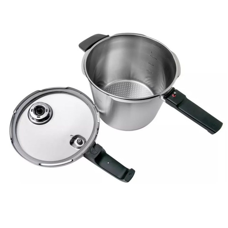ساخته شده از استیل 18/10، گنجایش 6 لیتر،قابلیت استفاده با کمترین میزان آب جهت پخت حجم کم مواد غذایی، کف چدنی، کفه دارای سیستم پخش یکنواخت حرارت، دارای چهار سوپاپ ایمنی، سوپاپ نمایشگر حجم بخار داخلی،سوپاپ با قابلیت تنظیم حجم بخار داخلی در سه درجه پخت بهمراه حالت خروجی بخار، دسته و سوپاپ بطور کامل جداشو قابل و شستشو، تنها زودپز موجود در بازار که قابلیت تحمل بخار تا حجم 150 کیلو پاسکال را داراست، دارای سبد و پایه بخارپز جهت پخت بخارپزی سریع مواد غذایی، واشر و سوپاپ از جنس سیلیکونی با طول عمر بالا، ساخت کشور آلمان