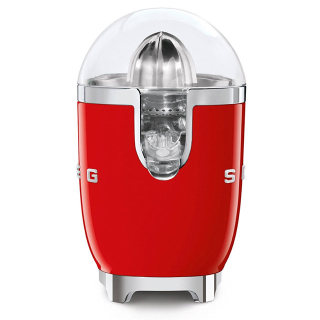 موتور اسمگ مدل CJF01 بسیار کم صدا بوده و دارای توانی معادل 70 وات است. این قدرت موتور، چرخش بالایی را برای آن تامین کرده است. همانطور که در تصاویر نیز مشخص است، این آب مرکبات گیر اسمگ از نوع بدون اهرم برقی میباشد. بدنه این آب مرکبات گیری smeg از بدنهای با جنس آلومینیوم ریختهگری یا همان دایکست ساخته شده است که هم در مقابل ضربه بسیار مقاوم است و هم در مقابل رطوبت، طول عمر بسیار بالایی دارد. همچنین مجهز به پایههای ضد لعزش میباشد که هنگام کار از تکان خوردن و لرزش آن جلوگیری میکند. عملکرد فشاری این آب مرکبات گیر اسمگ فشاری است. برخلاف دیگر آب مرکبات گیرهای دیگر که ابتدا باید دستگاه را روشن کرده و سپس به وسیل اهرم فشاری یا هر وسیلهی دیگری، میوه قاچ شده را روی مخروطی فشار میدهید، در این آب مرکبات گیر به محض فشار دادن مخروطی دستگاه شروع به کار میکند و مخروطی شروع به چرخش خواهد کرد. به این ترتیب هم در مصرف انرژی بسیار صرفه جویی خواهد شد، هم سطح امنیت بالا خواهد رفت. بنابراین کافیست که میوه نصف شده را روی مخروطی، به میزان بسیار کمی فشار دهید تا موتور قدرتمند دستگاه شروع به کار نماید. سیم اتصال این آب مرکبات گیری با پریز برق از طریق کابل 1 متری آن صورت میگیرد. محفظهی جمع آوری سیم در زیر دستگاه طراحی شده است تا نگهداری و حمل و نقل آن بسیار آسان شود.