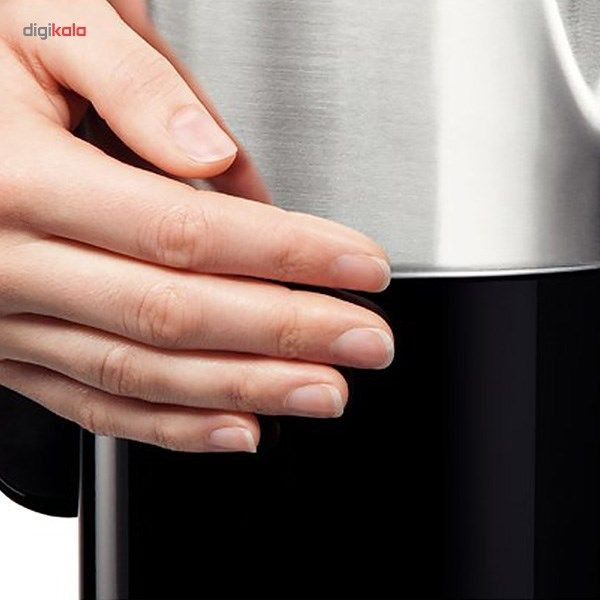 کتری برقی بوش مدل TWK8613 قابلیتهای زیادی دارد و از طراحی ویژهای بهره میبرد. این دستگاه با ترکیب استیل و پلاستیک زیبایی خاصی دارد و رنگ مشکی آن زیبایی بیشتری به محیط میبخشد. کتری برقی بوش مدل TWK8613 دو قسمت کلی دارد. پایه جایی است که تمام تنظیمات دستگاه از روی آن قابل انتخاب است. از این قسمت دستگاه روشن و خاموش میشود یا در حالت گرم نگهدار قرار میگیرد. با استفاده از دکمههای مثبت و منفی میتوان دمای آب را تعیین کرد تا برای مصارف خاص و همچنین افزایش راندمان دستگاه قابل انتخاب باشد. کتری روی این پایه قرار میگیرد و محدودیت کابل برق برای خود کتری وجود ندارد، بهاینترتیب میتواند چرخش 360 درجه داشته باشد و افراد چپدست هم بهراحتی از آن استفاده کنند. دسته کتری طراحی سادهای دارد و خوشدست است. در کتری با یک دکمه روی آن باز و بسته میشود. داخل کتری و در قسمت دهانه، یک صافی قرارگرفته تا جرم داخل آب جوشیده وارد لیوان و نوشیدنی نشود. زیر دسته کتری نشانگر مدرج وجود دارد تا میزان آب داخل کتری را نشان دهد. بوش از تولید و عرضهکنندگان باسابقه لوازمخانگی برقی است که محصولات باکیفیت و کارآمدی وارد بازار کرده است.